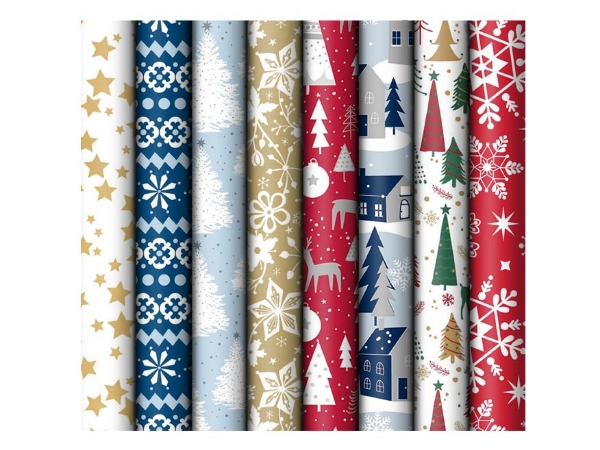 Zabalte své dárky do kouzelné atmosféry Vánoc! Tento vánoční balicí papír v roli přináší 8 nádherných motivů, které dokonale vystihují sváteční období – od hvězd a vloček po stromky, soby a zimní krajinky s domečky.