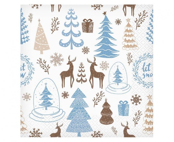 Vánoční ubrousky s hravým motivem Vánočního lesa . Balení 20 ks, velikost 33x33cm